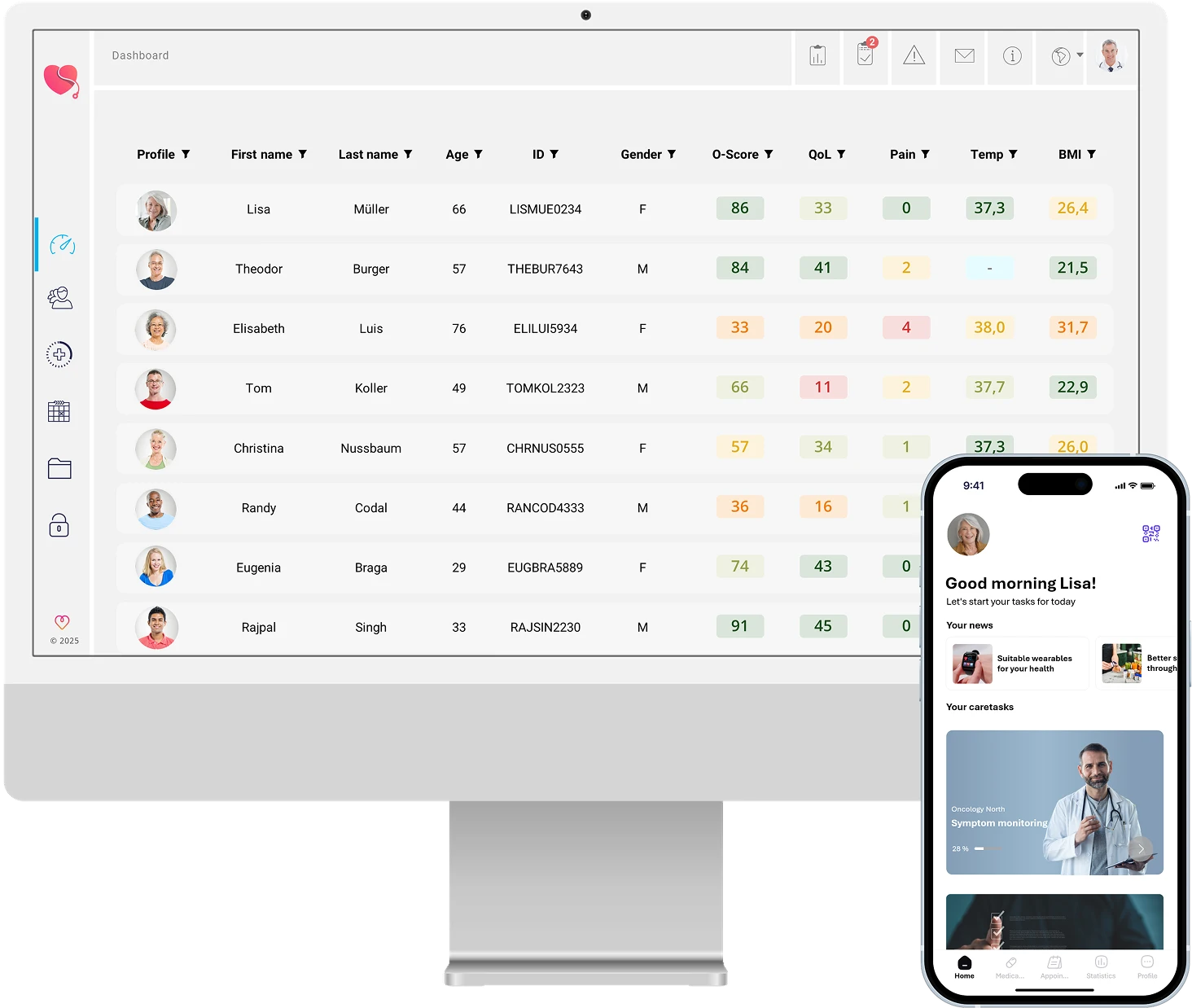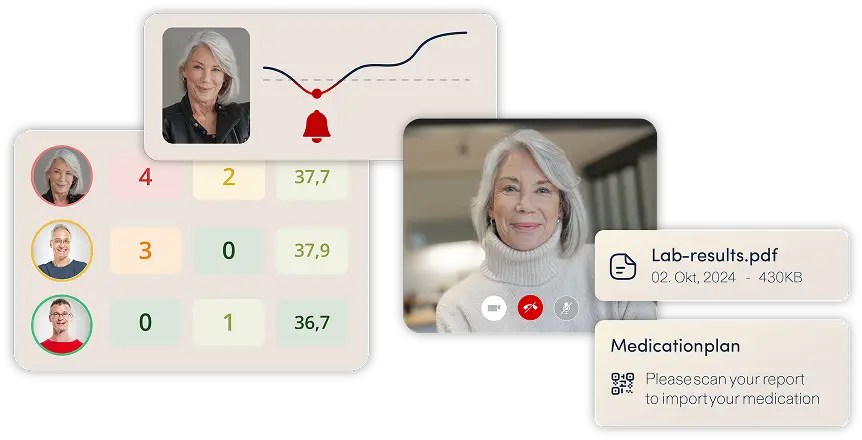 One platform connecting patients, care teams, and data. myoncare automates risk assessments, health monitoring, reminders, education, and telecommunication - all in one compliant infrastructure.